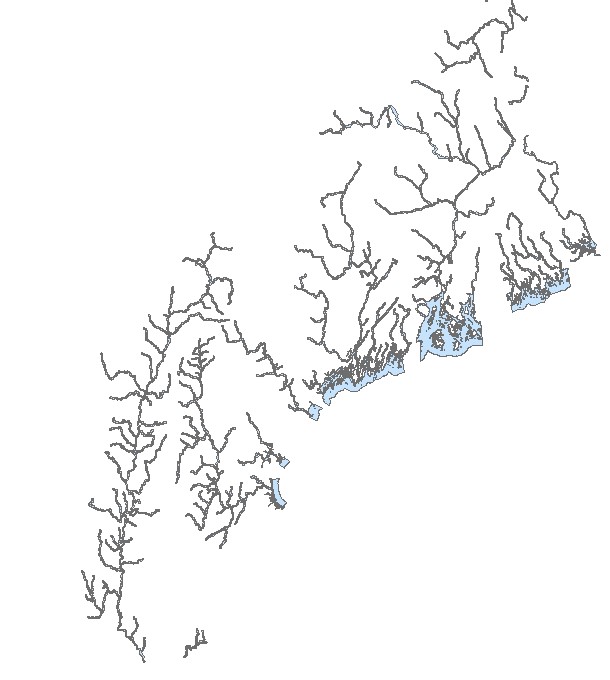 Description: The EFH designation for Atlantic salmon includes the rivers, estuaries, and bays which exhibit the environmental conditions defined in the text description. There are two parts of the text description, one for fresh water spawning and rearing habitats and one for habitats used during migrations to and from the ocean, each with information specific to certain life history stages. Smaller tributaries not shown on the map would also be EFH for one or more life stage as long as they conform to the proposed habitat descriptions. All river systems proposed for designation form a direct connection to the sea, but EFH would not include portions of rivers above naturally occurring barriers to upstream migration or land-locked lakes and ponds. The oceanic component of EFH is limited to a distance of three miles from the mouth of each river.